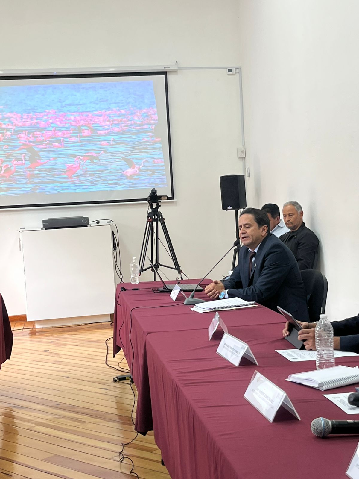El aspirante a Doctor en Ciencias Jurídicas, Ricardo Villagómez Villafuerte Maestro en la Facultad de Derecho y Ciencias Sociales de la Universidad Michoacana, que por su perfil Nicolaita también está considerado entre los posibles aspirantes a la Rectoría, en su presentación ubicó la perspectiva contemporánea internacional de los derechos humanos, así como la cultura de la legalidad y de vinculación para la capacitación con instituciones a efecto de evitar en lo posible violaciones a los derechos humanos, y planteo su proyecto de fortalecimiento y respuesta institucional.