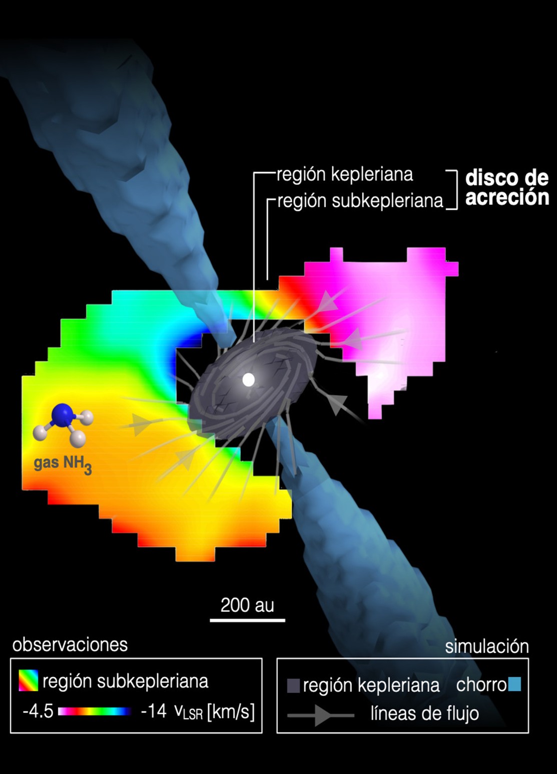 Para corroborar su resultado, el equipo analizó simulaciones por computadora que usan modelos teóricos recientes de formación estelar, y encontraron que las características del disco en las simulaciones, como su tamaño, qué tanto gas tiene y qué tan rápido se mueve, coinciden con las observadas.